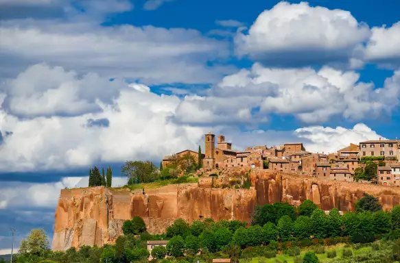 Our last day of Etruscan discovery, will take us to the Umbrian town of Orvieto. Sitting on a natural pedestal atop volcanic rock, Orvieto looks almost at one with the red-hued rock. It's unspoilt, undercrowded and home to some of the most beautiful buildings in Italy. Its standout feature is the Gothic cathedral.