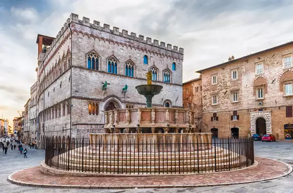 On our guided tour, we'll split into smaller groups to wander along the Corso Pietro Vannucci, the city's main street, a vibrant pedestrian promenade lined with elegant shops, pavement cafés, and historic buildings, including the Palazzo dei Priori, which houses the National Gallery of Umbria. This wide avenue leads to the Piazza IV Novembre – the heart of the city. Here, you'll find the gothic elegance of San Lorenzo cathedral and the intricately carved Maggiore fountain.
