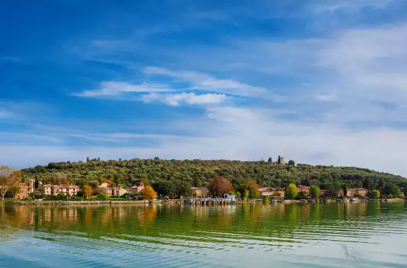 Travel to Lake Trasimeno, lovingly called the Sea of Umbria by locals. The lake gives landlocked Umbria a splash of azure amongst the nearby gently sloping green hills covered with olive groves and thick woodlands. From the lakeside town of Passignano, we will take the ferry across the calm waters to Isola Maggiore, the only island on Lake Trasimeno with a permanent, albeit small, population residing in its small fishing village. As we approach, you'll be able to see the 19th-century Guglielmi Castel nestled in the wooden hillside.