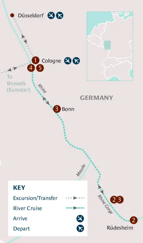 - Enjoy visits to Christmas markets, including Rüdesheim, Bonn and Cologne.
