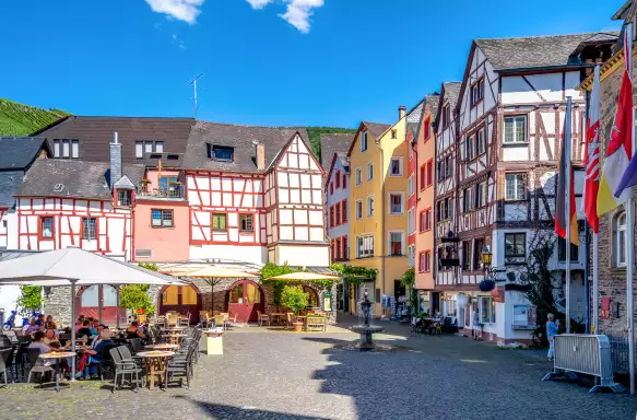 This afternoon, we’ll glide into our mooring at Cochem, where we'll have a guided tour. This is the traditional centre of the Moselle wine trade, so dominating the scene is a multi-turreted castle crowning a vineyard covered hillside, but Cochem’s real charm is its jumble of narrow streets lined with pastel-coloured buildings and peppered with quirky shops and wine cellars.