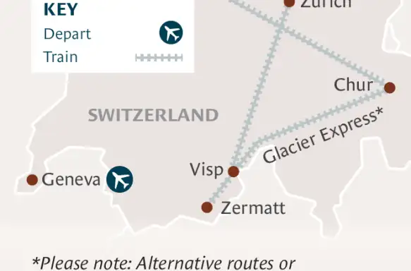 On our extension we explore Switzerland by train. From the winding cobbled streets of Chur, we'll enjoy an unforgettable adventure on the iconic Glacier Express to Zermatt at the foot of the mighty Matterhorn. From snow-dusted mountain ranges and striking glaciers to wonderful, lush green landscapes, discover the alpine wonderland of Switzerland on this incredible tour extension.