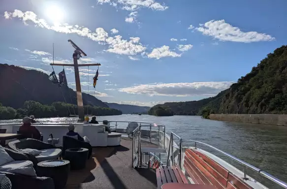 This morning, you'll have plenty of time to relax and enjoy the scenery. You’re cruising some of Europe’s most dramatic and romantic waterways – the mighty River Rhine and its tributary the Moselle - so there are endless beautiful views to enjoy, as picture-postcard villages with slanting timber-framed houses pass by. After a leisurely breakfast, get a cup of tea or coffee and take it to the Sun Deck, or head to the lounge and simply watch the scenery slip by.