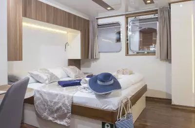 The glossy teak, gleaming decks and dazzling chrome exude the glamour that goes hand in hand with this type of yacht cruising and once on board, you’ll be wowed by the elegant contemporary interior; its subtle soothing colour scheme and understated style, provides the perfect ambience in which to unwind. Take dinner in a bright, spacious restaurant, furnished in a simple yet elegant style, creating an informal and comfortable dining experience. Daily breakfast offers hot and cold dishes, and either lunch or dinner presents local dishes from around the Adriatic. At the 'Captain's dinner' enjoy specially selected dishes, whilst the other evenings will be free to dine as you wish in the ports we visit.