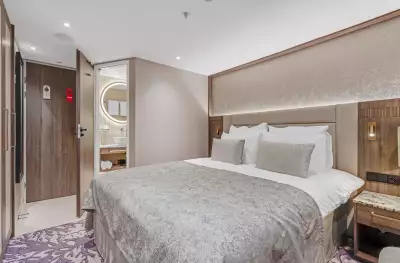 The Emerald Deck cabin offers enhanced comfort and privacy, featuring a fixed window, climate control and a modern ensuite bathroom.