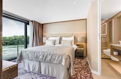 Enjoy the comfort of this cabin, complete with floor to ceiling windows, a French-style balcony for stunning river views, and a modern ensuite bathroom.