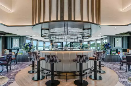The Ruby Deck can be summed up by the swish of a napkin and the clink of a glass. Our ship's main restaurant is located on the Ruby Deck, offering an exceptional service pairing seasonal menus with a glass of wine from our carefully curated wine list, including a selection of regional favourites. Our friendly and attentive staff are only too happy to help from recommendations to alternative dietary options, nothing is too much trouble. So, you can just sit back and delight in the wonderful elegance of your surroundings; beautifully laid tables of just 4 or 6 guests, crisp linen, deep wool carpets and warm wood panelling abound to offer a delectable dining experience of the highest order.