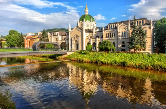 On our guided tour this morning, we'll see the Sebilj Brunnen Fountain and Gazi Husrev-beg Mosque - built in 1530, it's the largest in Sarajevo Centre. We'll also have the opportunity to admire some wonderful examples of architecture with Ottoman, Austro-Hungarian and Yugoslav influences the city is famous for. We’ll see the spectacular City Hall built in pseudo-Moorish style between 1892-1894. As well as stroll along the Miljacka river, passing the Latin bridge - the site of the assassination of Archduke Franz Ferdinand of Austria in 1914, which began the July Crisis that ultimately led to the outbreak of World War I.